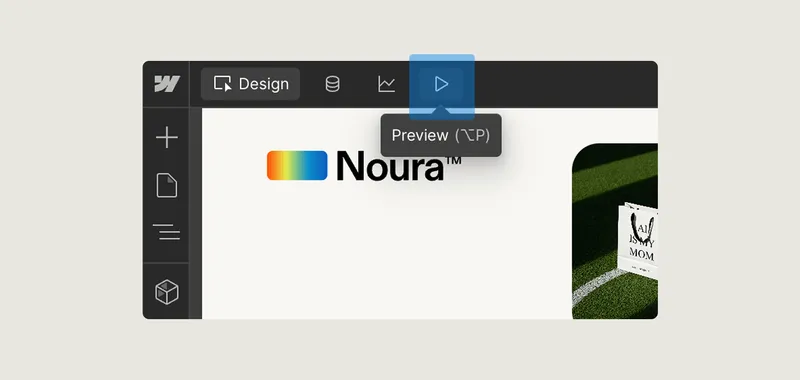To preview your site, click the play icon in the top bar of the Designer. This will enter Preview mode, allowing you to interact with the site as if it were live — including animations, hover effects, and links — without needing to publish.